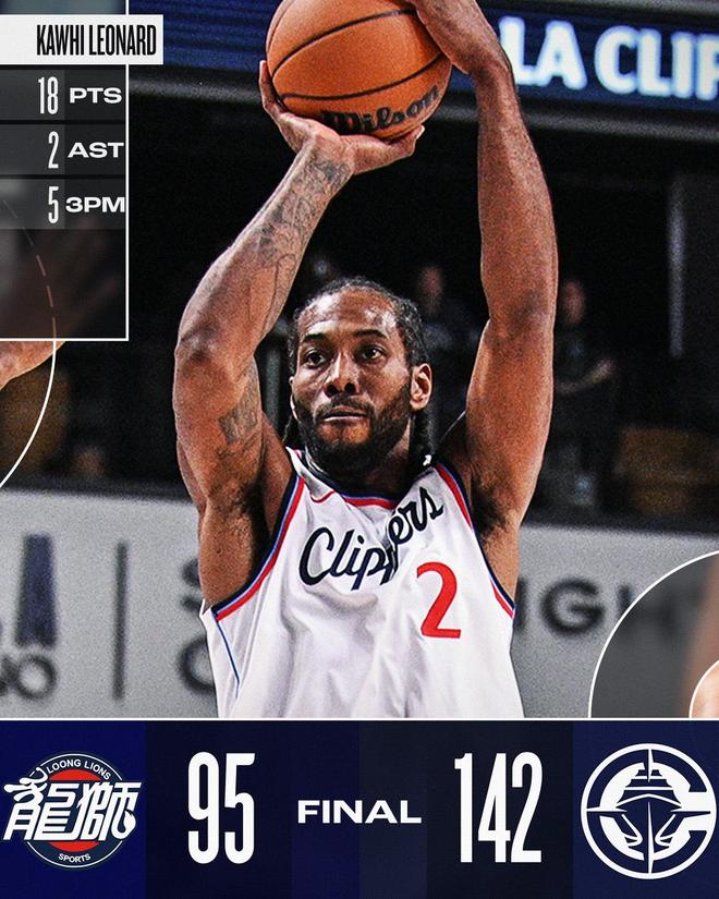 末节决战,两队都派上了板凳席末端的球员,快船在进攻端依旧无解。陈国豪外线发难,但为时已晚。快船将分差扩大至50分,时间所剩不多。最终,快船以142比95狂胜对手。